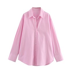 Mujeres 2025 primavera nueva moda Chic arco rayas popelina camisa Vintage manga larga Casual Mujer Camisas Blusas Chic Tops