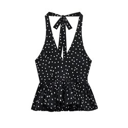 Mujeres 2025 primavera nueva moda Chic Dot Halter Tank Tops Vintage espalda descubierta Casual mujer Camis Chic Tops