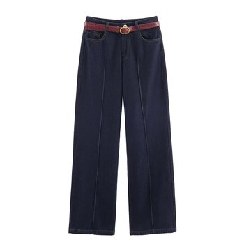Mujeres 2025 otoño nueva moda cinturón cintura alta pierna ancha Jeans Vintage cintura alta cremallera bolsillos Casual Mujer pantalones vaqueros Mujer