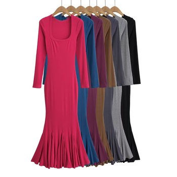 Mujeres 2024 verano nueva moda gran cuello en U vestido de cola de pez Vintage Slim-Fit Casual Chic vestidos femeninos Mujer