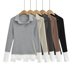 Mujeres 2025 otoño nueva moda elegante Camiseta de manga larga Vintage Slim Fit All-match Casual Mujer camiseta Tops Mujer