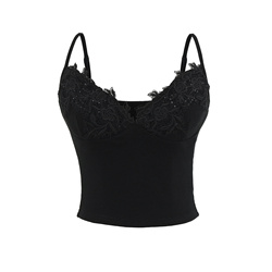 Mujeres 2025 otoño nueva moda elegante recortada con encaje recortado tallado camisetas sin mangas Vintage Slim Fit Casual mujer Camis Chic Tops