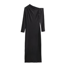 Mujeres 2025 otoño nueva moda vestido largo asimétrico Vintage manga larga Casual Mujer Vestidos Robe Mujer