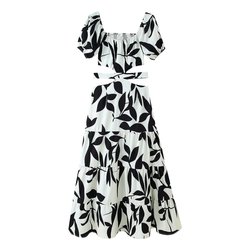 Mujeres 2025 verano nuevo Chic moda hueco cintura estampado Midi vestido Vintage manga corta Casual Mujer Vestidos bata Mujer