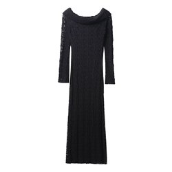 Mujeres 2025 otoño nueva moda encaje vestido sin tirantes Vintage manga larga cremallera lateral Casual Mujer Vestidos Mujer