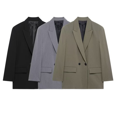 Kadınlar 2024 yeni moda gevşek çift göğüslü Blazer ceket Vintage uzun kollu rahat kadın giyim Chic Tops