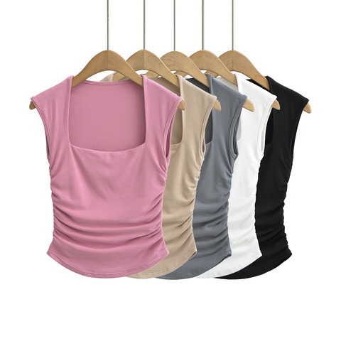女性2024夏の新しいファッションスクエアカラータンクトップスレトロスリムフィットカジュアル女性キャミスシックトップス