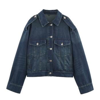 เสื้อโค้ทตัวสั้นผ้ายีนส์ผู้หญิงวินเทจแขนยาวมีกระเป๋า2025เข้าได้กับทุกชุดเสื้อผ้าลำลองเสื้อตัวเก๋ๆ
